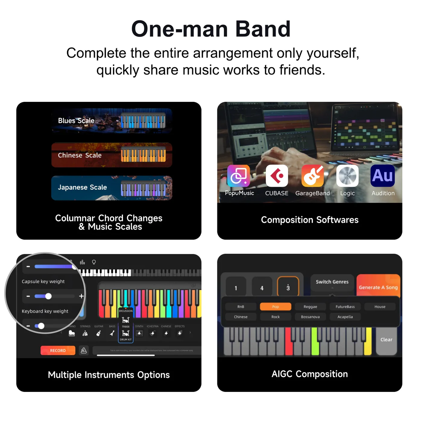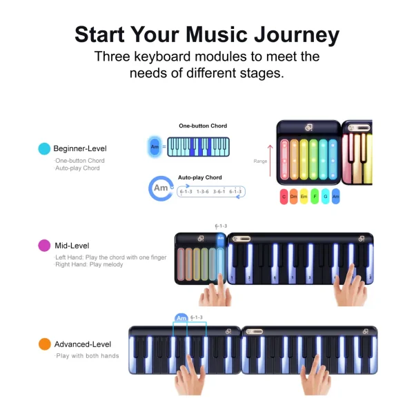 Với thiết kế đột phá, tính năng thông minh và khả năng di động đáng kinh ngạc, PopuPiano không chỉ là một nhạc cụ, mà là cả một hệ sinh thái học và chơi piano đầy cảm hứng, mang đến trải nghiệm âm thanh trọn vẹn và sống động.